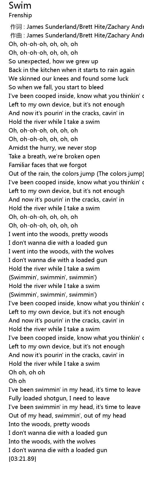 | [01:46.23] | (Swimmin', swimmin', swimmin') |