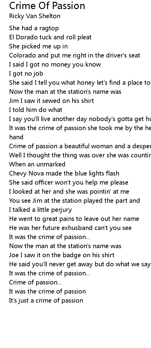 It was the crime of passion she took me by the heart when she took me by the hand |