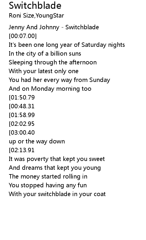 | [00:02.00] | Jenny And Johnny - Switchblade |