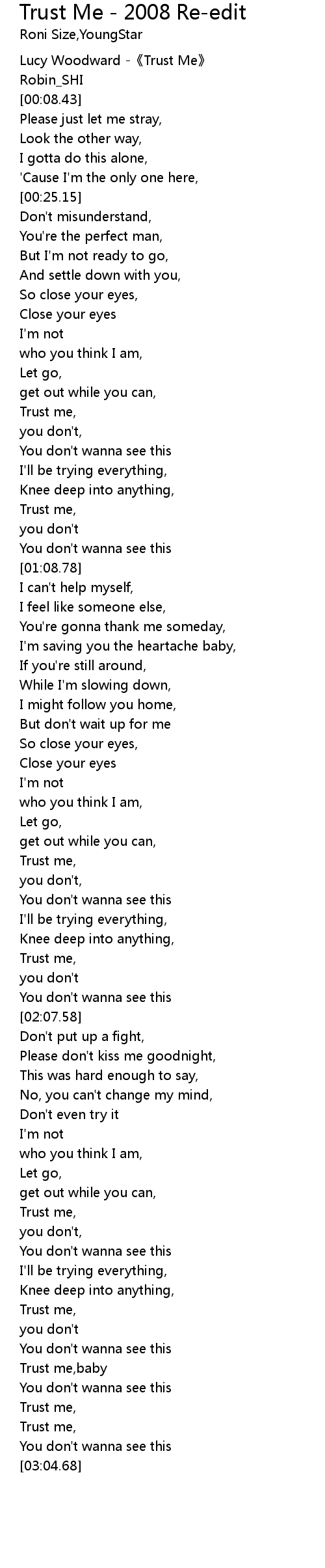| [00:04.25] | Lucy Woodward -《Trust Me》 |