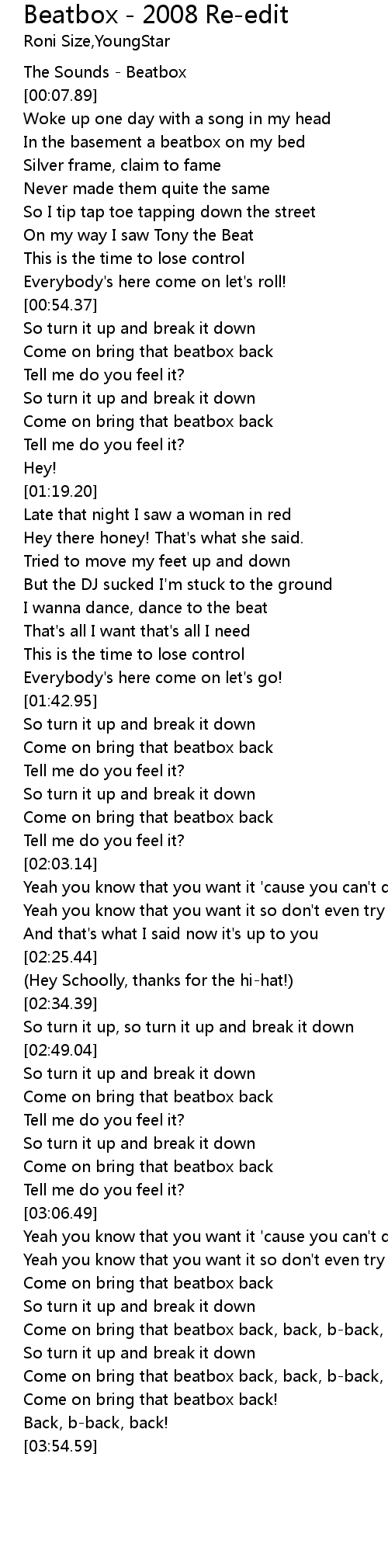 | [03:35.70] | Come on bring that beatbox back, back, b-back, back! |