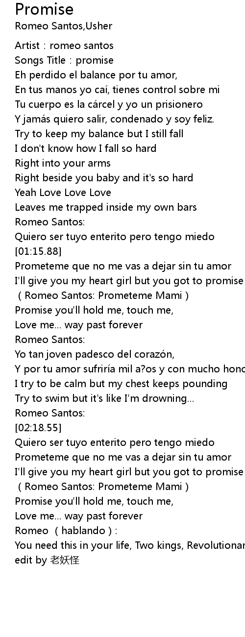 | [01:31.73] | (Romeo Santos: Prometeme Mami) |