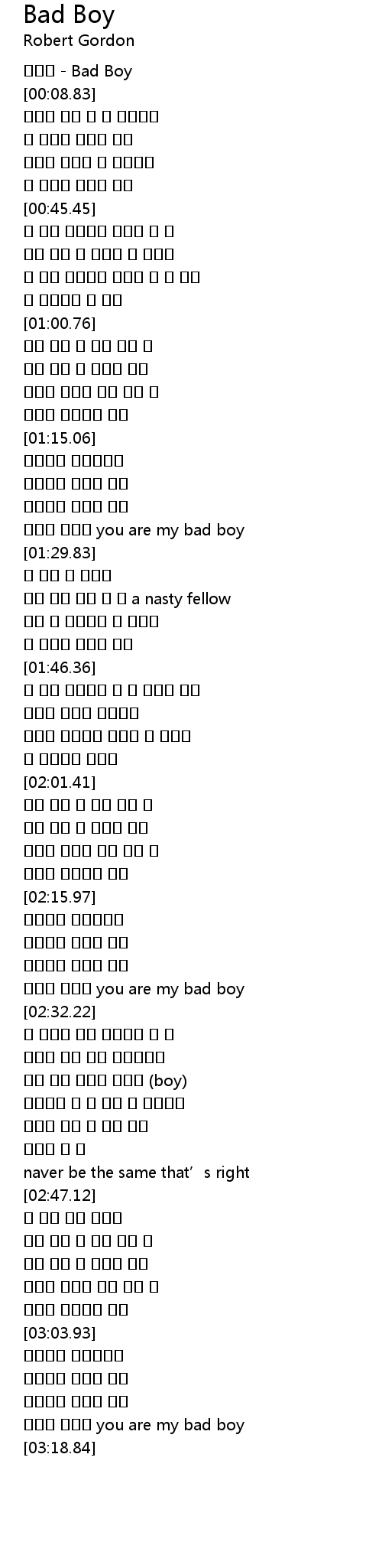 | [02:26.99] | 상처만 남겨준 you are my bad boy |