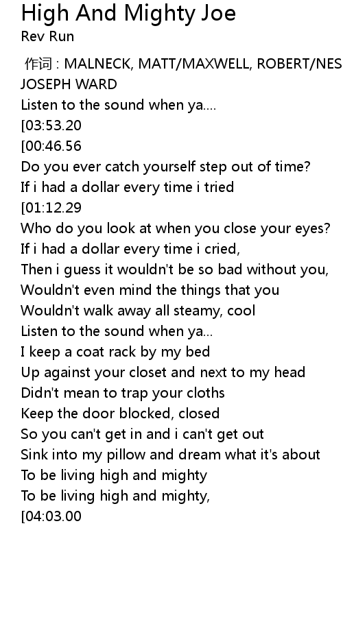 | Song | High And Mighty Joe |
