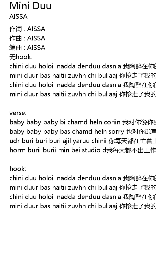| chini duu holoii nadda denduu dasnla 我陶醉在你的歌声中 | |