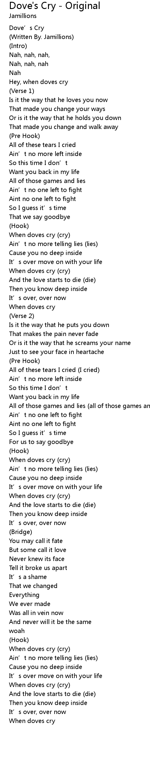 | Song | Dove's Cry - Original |
