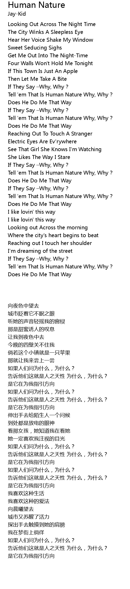 | [01:35.130] | Tell ' em That Is Human Nature Why, Why? |