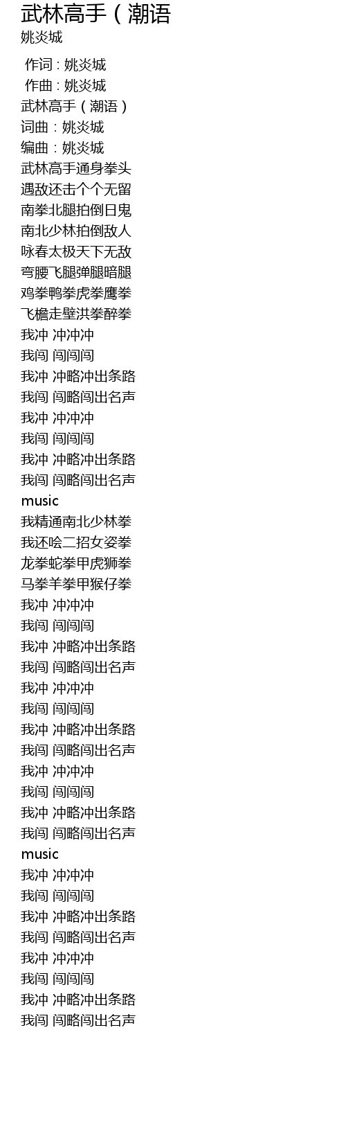 | [00:38.00] | 飞檐走壁洪拳醉拳 |
