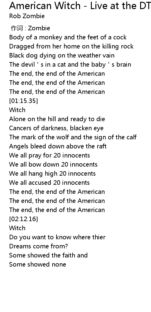 | Song | American Witch - Live at the DTE Energy Music Theatre, Detroit |