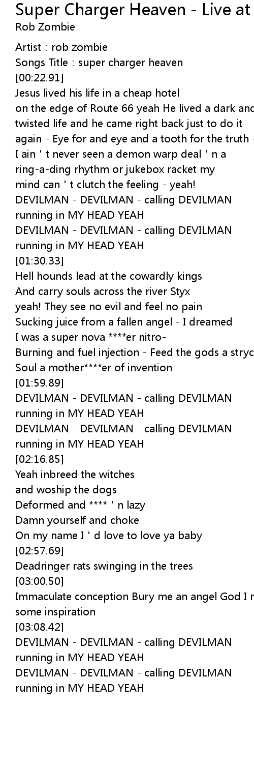 | [00:17.17] | Artist: rob zombie |