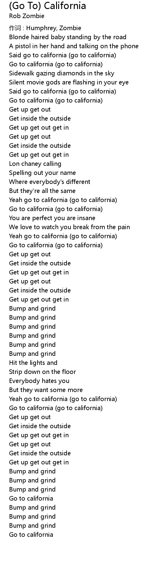 | Yeah go to california (go to california) | |