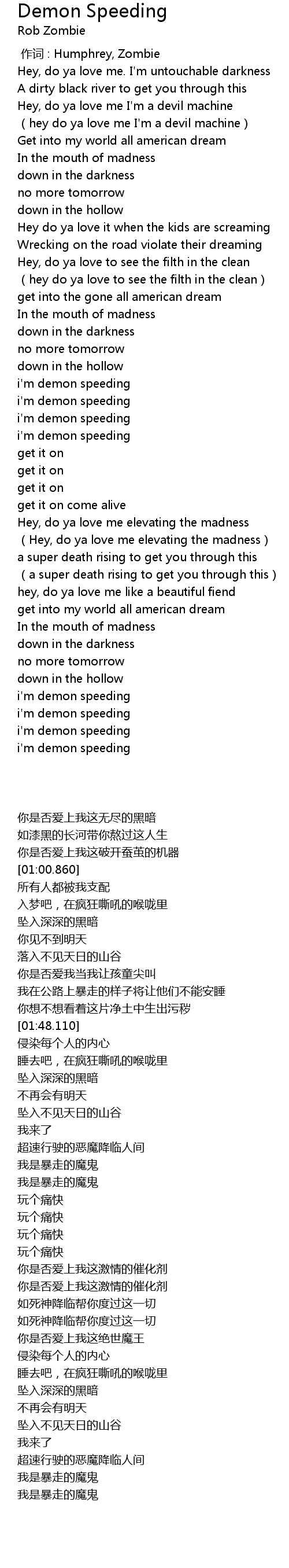 | [02:10.740] | i' m demon speeding |