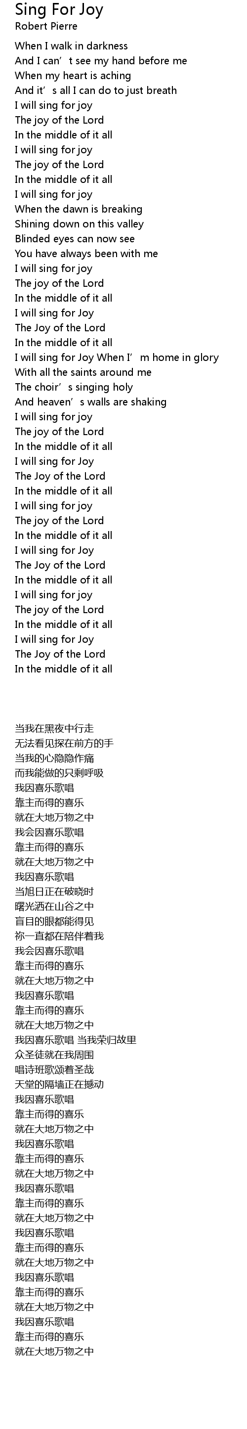 | [02:07.06] | I will sing for Joy When I’m home in glory |