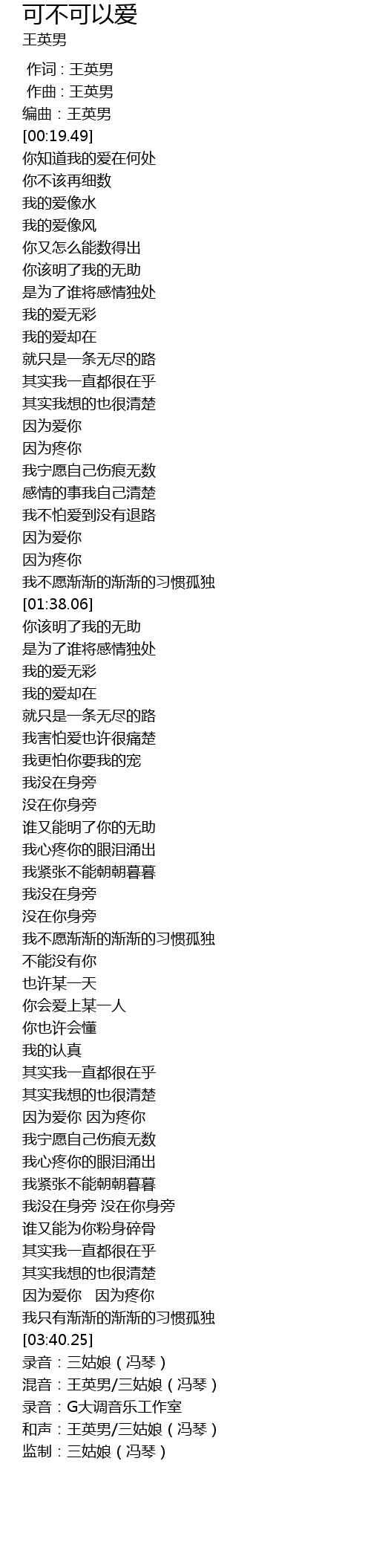 | [03:29.44] | yin wei ai ni yin wei teng ni |