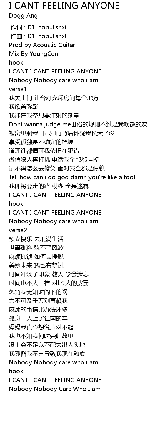 | [02:44.298] | I CANT I CANT FEELING ANYONE |