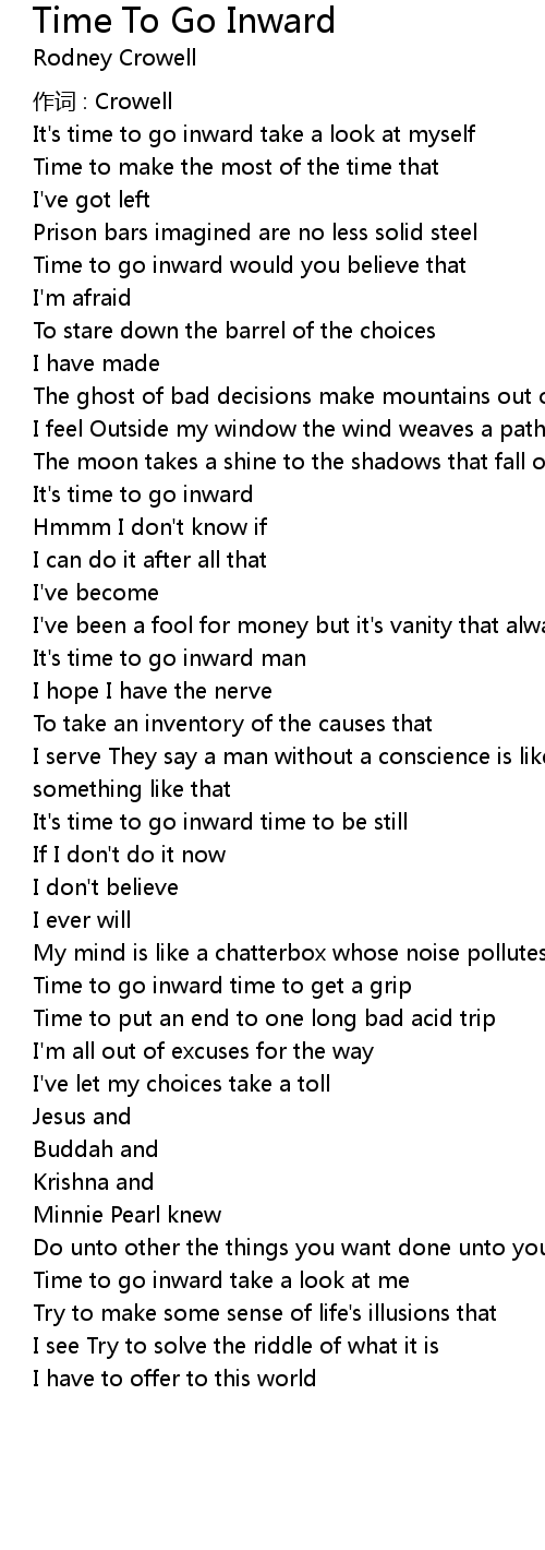 | It' s time to go inward time to be still | |