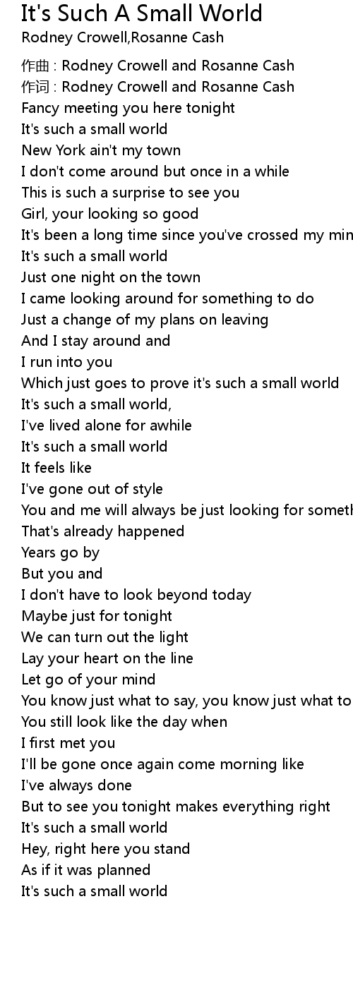| It' s such a small world, | |