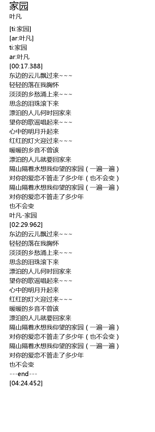 | [00:01.763] | ti:家园 |