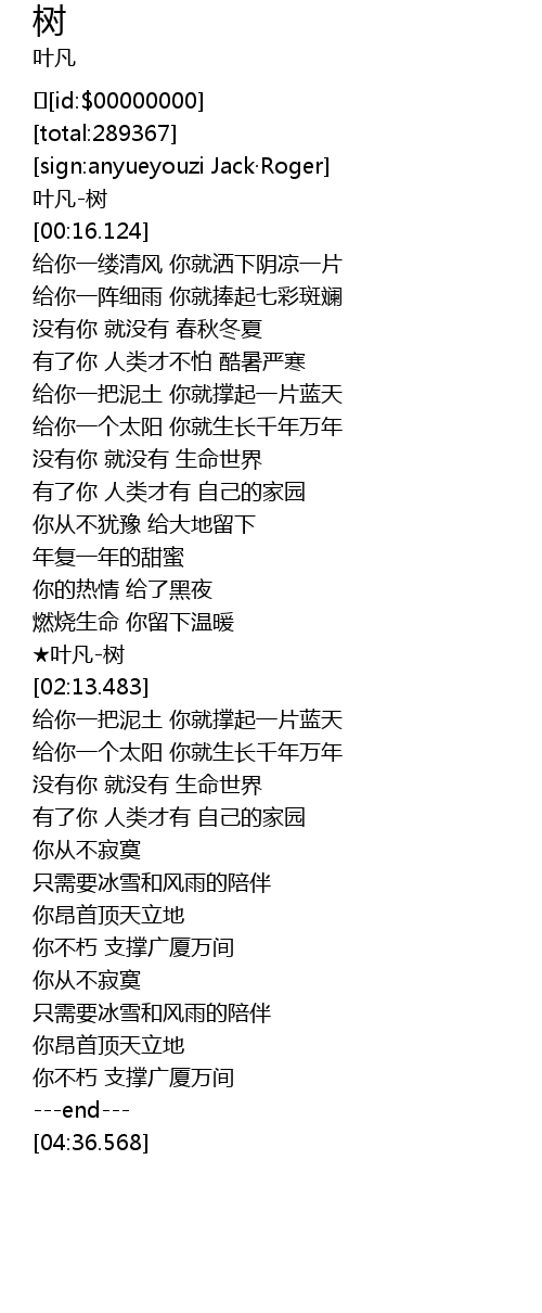 | [02:04.233] | ★叶凡-树 |