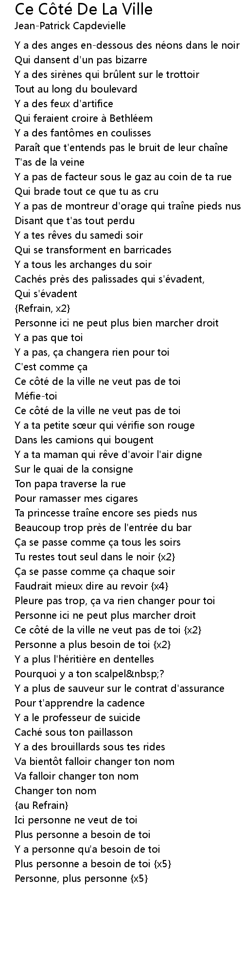 | Ce côté de la ville ne veut pas de toi {x2} | |