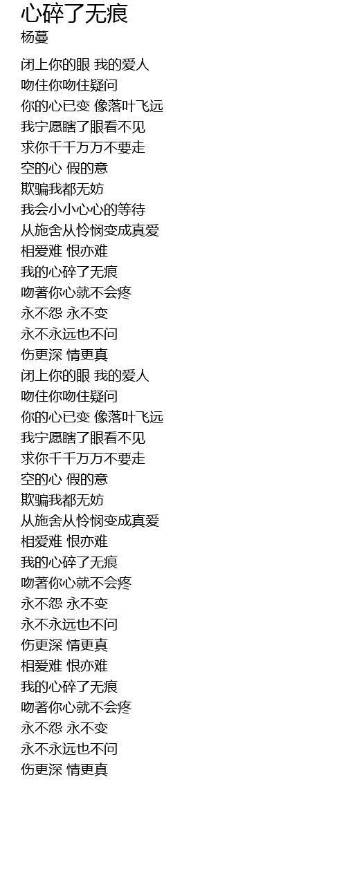| [03:37.910] | wǒ de xīn suì liǎo wú hén |