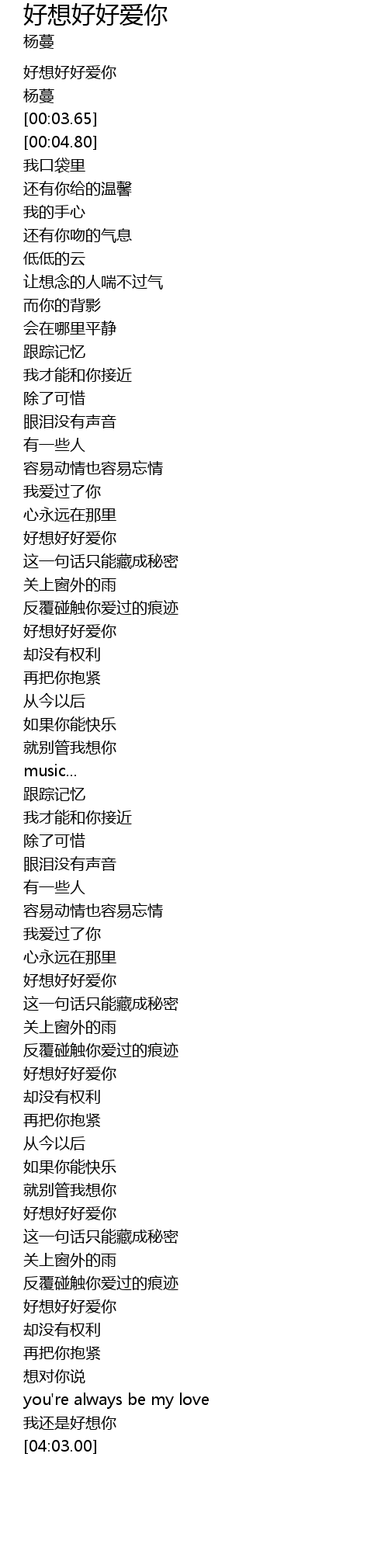 | [03:43.34] | hǎo xiǎng hǎo hǎo ài nǐ |