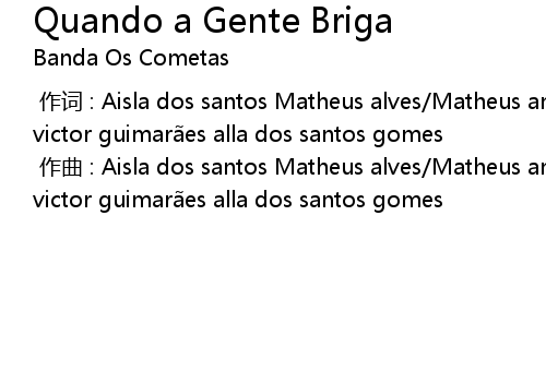 | [00:00.000] | 作词 : Aisla dos santos Matheus alves/Matheus andrade neves/jão victor guimarães alla dos santos gomes |