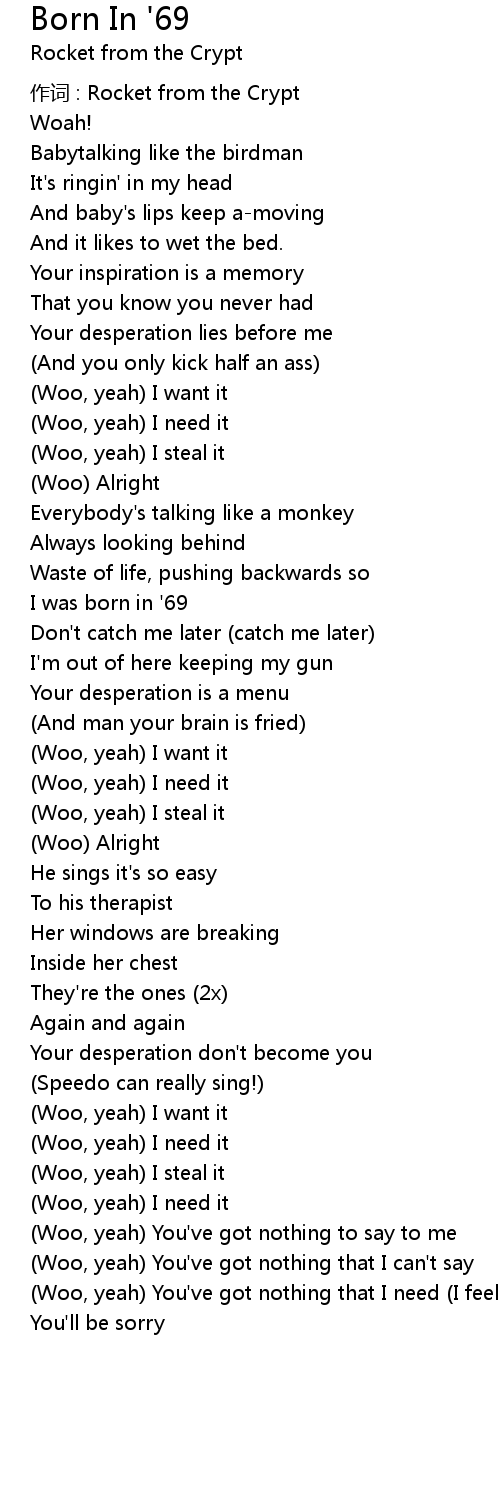 | 作词 : Rocket from the Crypt | |
