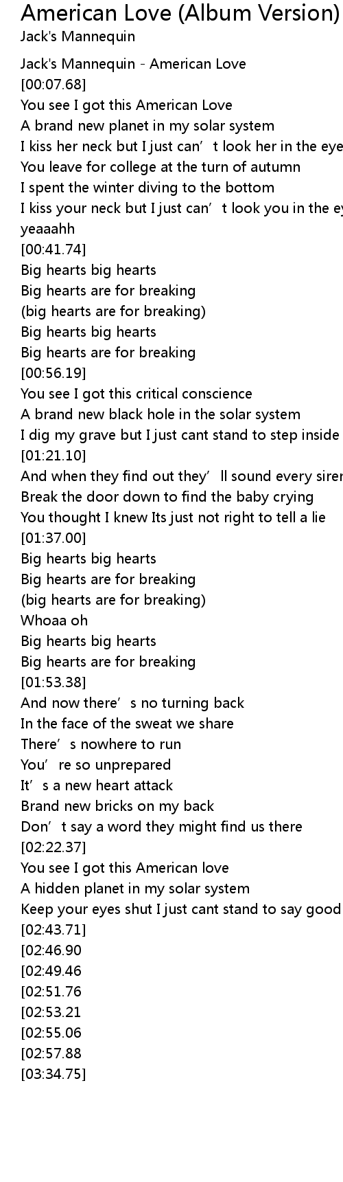 | [00:01.35] | Jack's Mannequin - American Love |