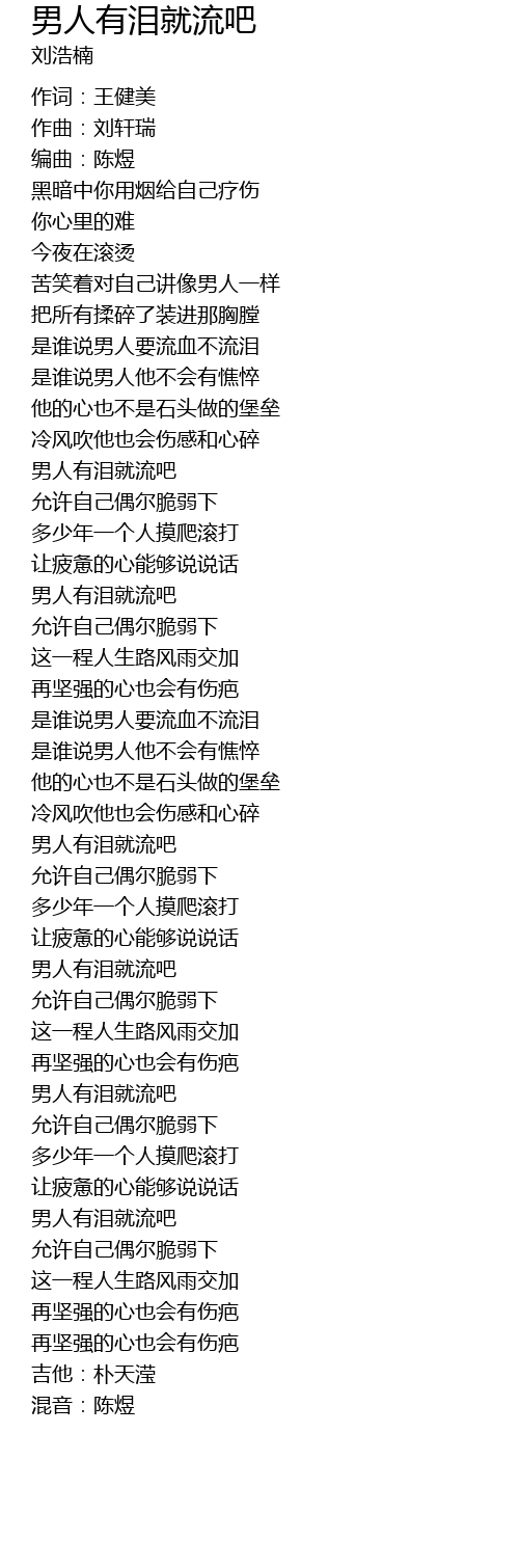 | [01:48.06] | nán rén yǒu lèi jiù liú ba |