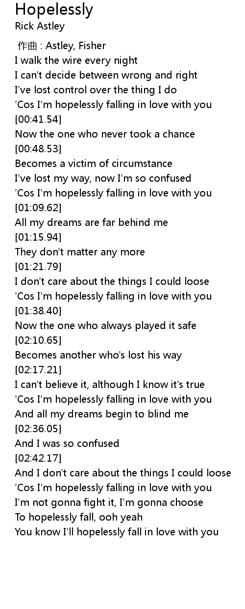 | [02:49.47] | 'Cos I'm hopelessly falling in love with you |