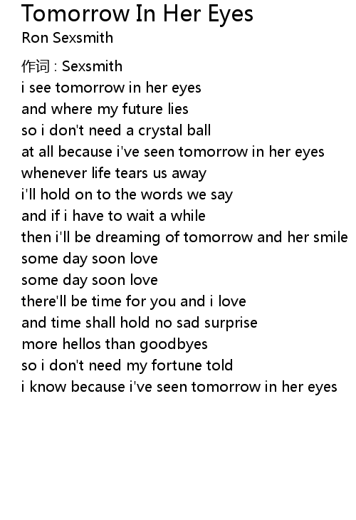 | i know because i' ve seen tomorrow in her eyes |
