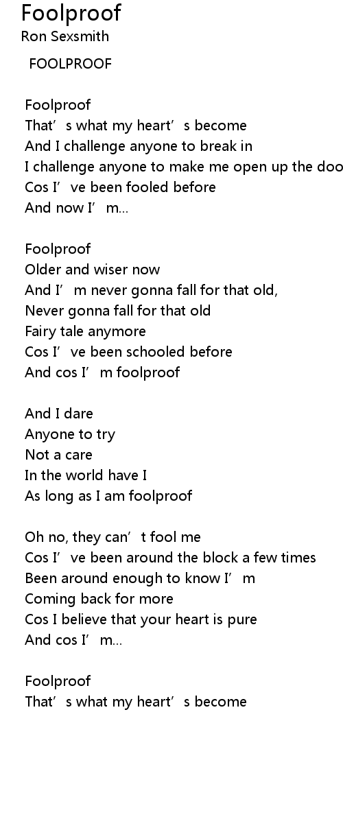 | And cos I' m foolproof | |