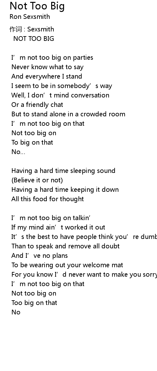 | Song | Not Too Big |
