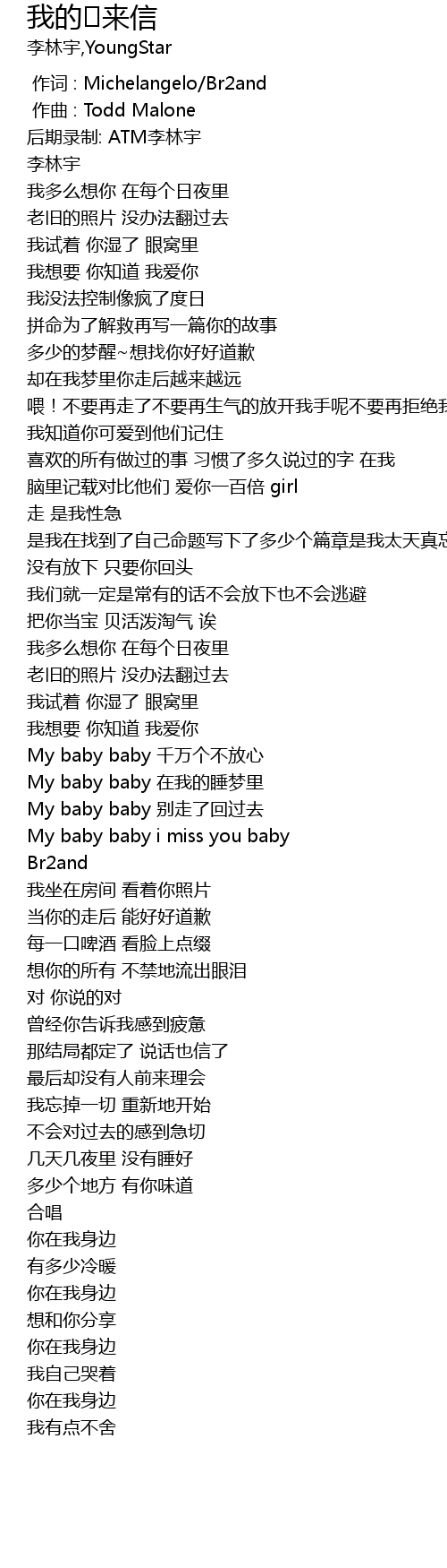 | [01:48.207] | My baby baby bié zǒu le huí guò qù |