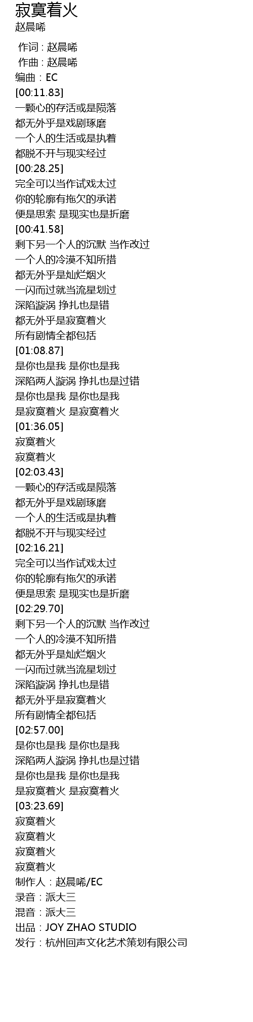 | [03:16.98] | 是寂寞着火 是寂寞着火 |