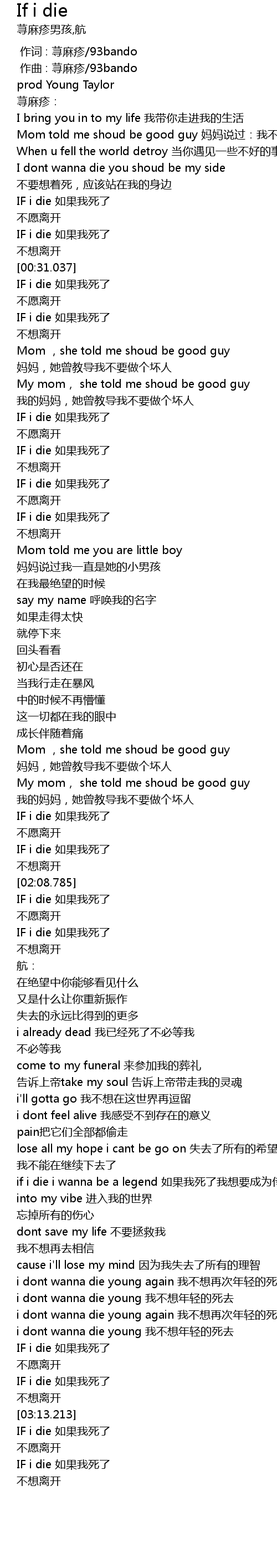 | [03:08.711] | IF i die 如果我死了 |