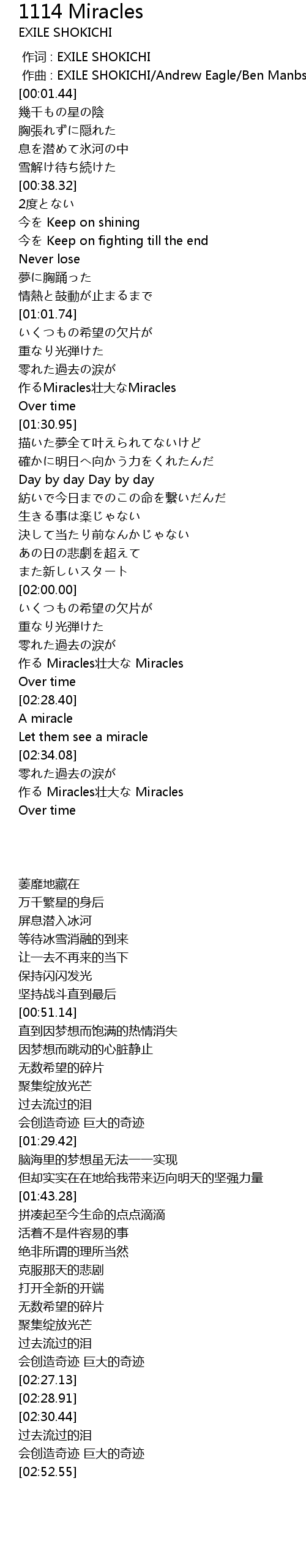 | [02:46.16] | zuò Miracles zhuàng dà Miracles |