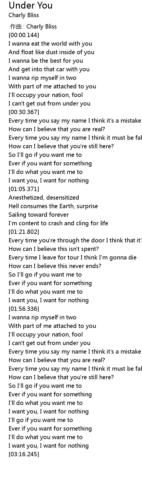 | [02:32.281] | Every time you say my name I think it's a mistake |
