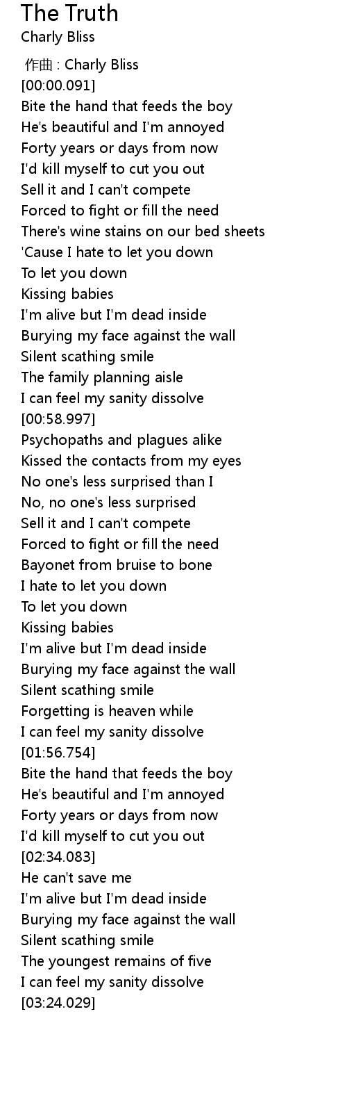 | [00:00.000] | zuò qǔ : Charly Bliss |