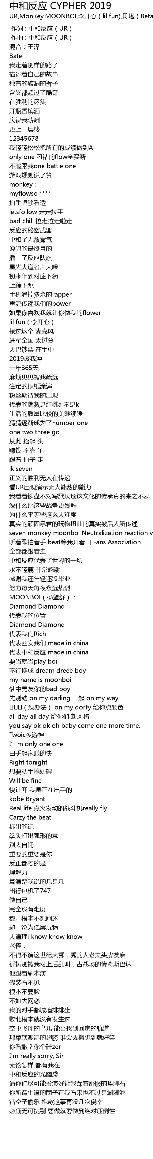 | Song | 中和反应 CYPHER 2019 |