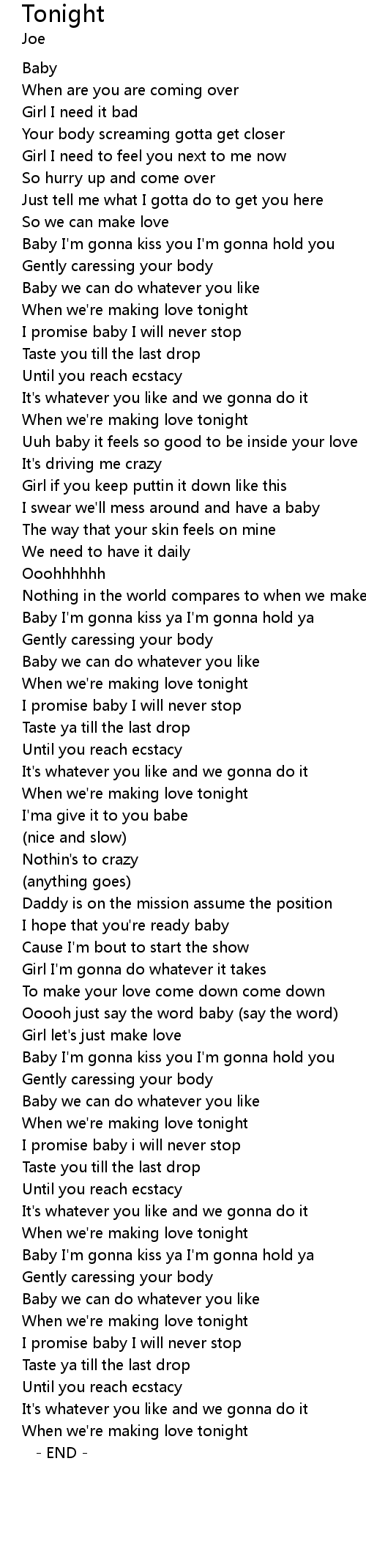 When we're making love tonight |