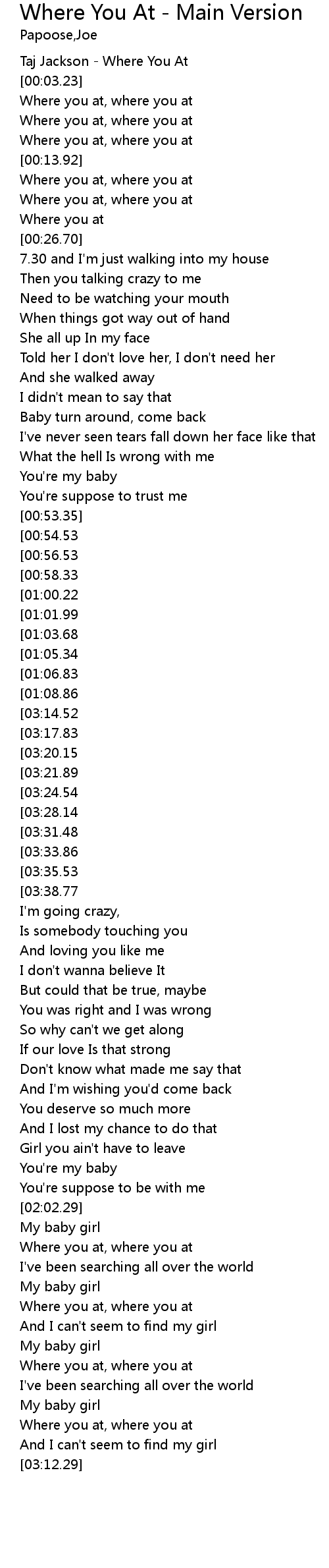 | [03:42.03][03:14.52][02:19.65][01:10.97] | I'm looking for my baby girl |