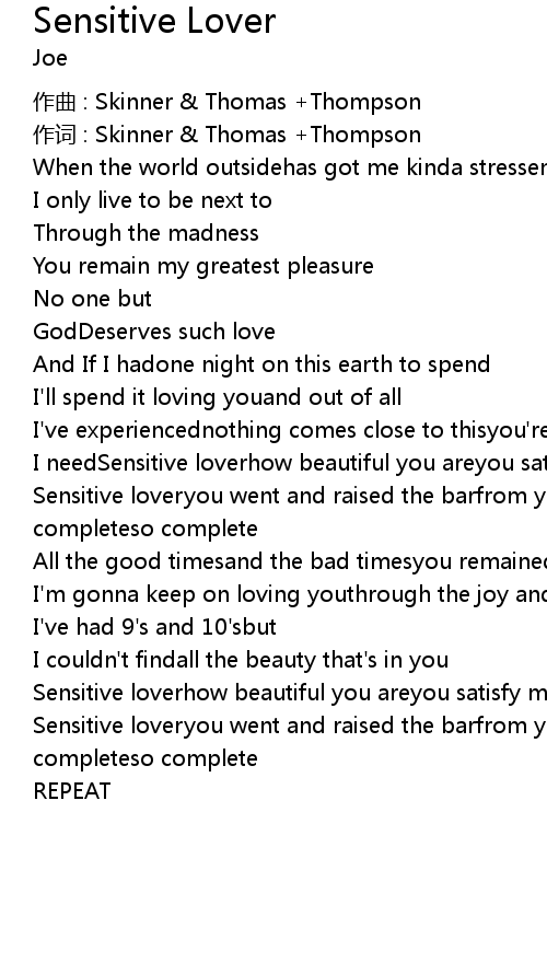| Sensitive loveryou went and raised the barfrom your head to your feetgirl you so completeso complete | |