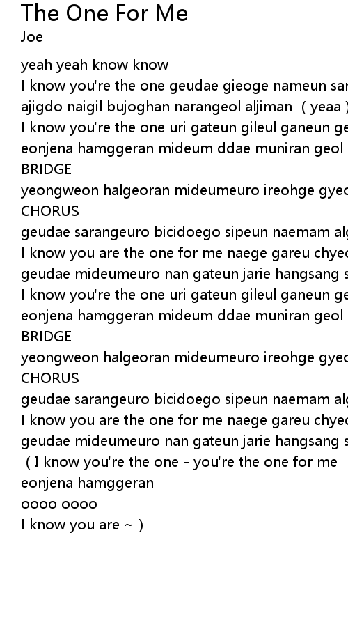 | [01:50.89] | I know you are the one for me naege gareu chyeojun |