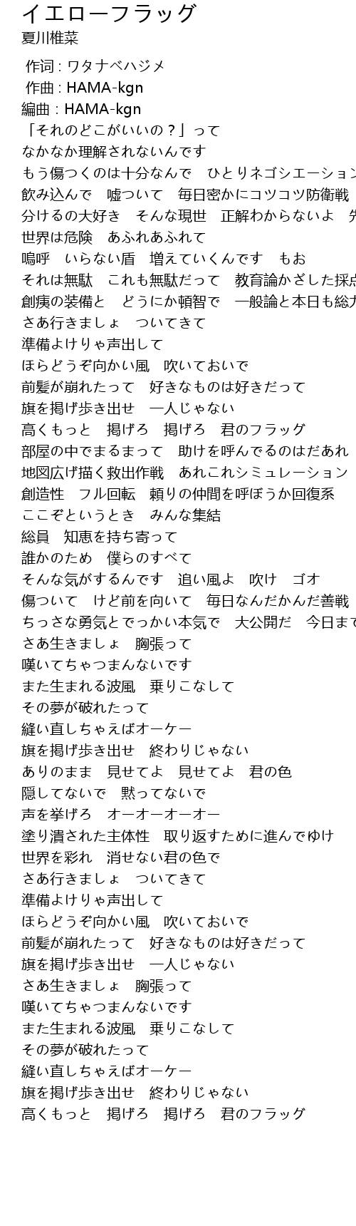 | [01:15.848] | 高くもっと 掲げろ 掲げろ 君のフラッグ |