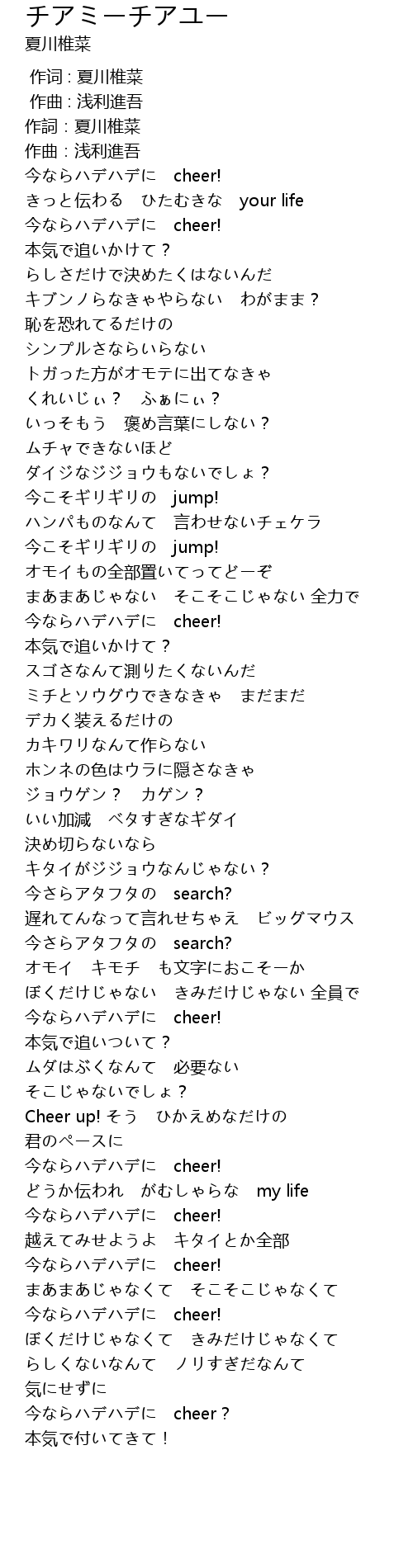 | [02:32.670] | Cheer up! そう ひかえめなだけの |
