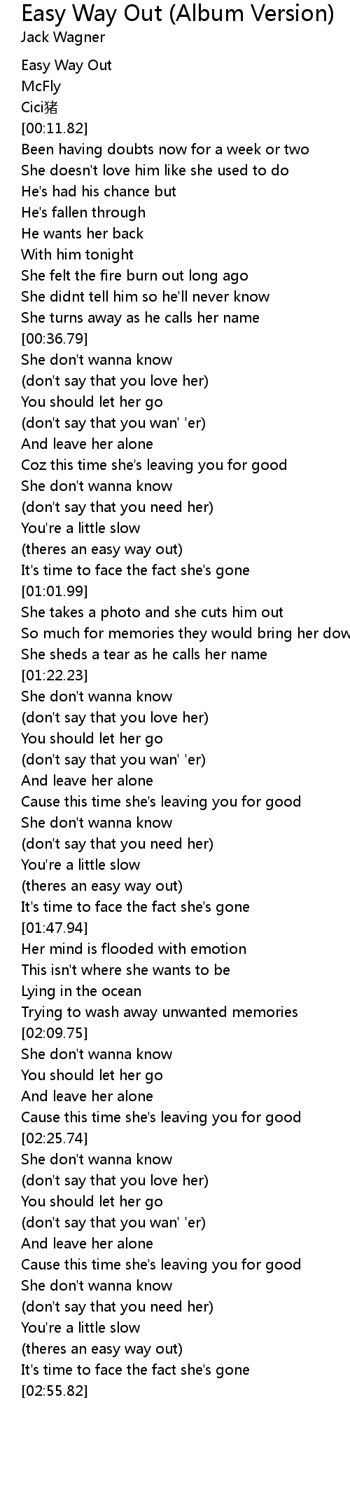 | [00:54.82] | (theres an easy way out) |