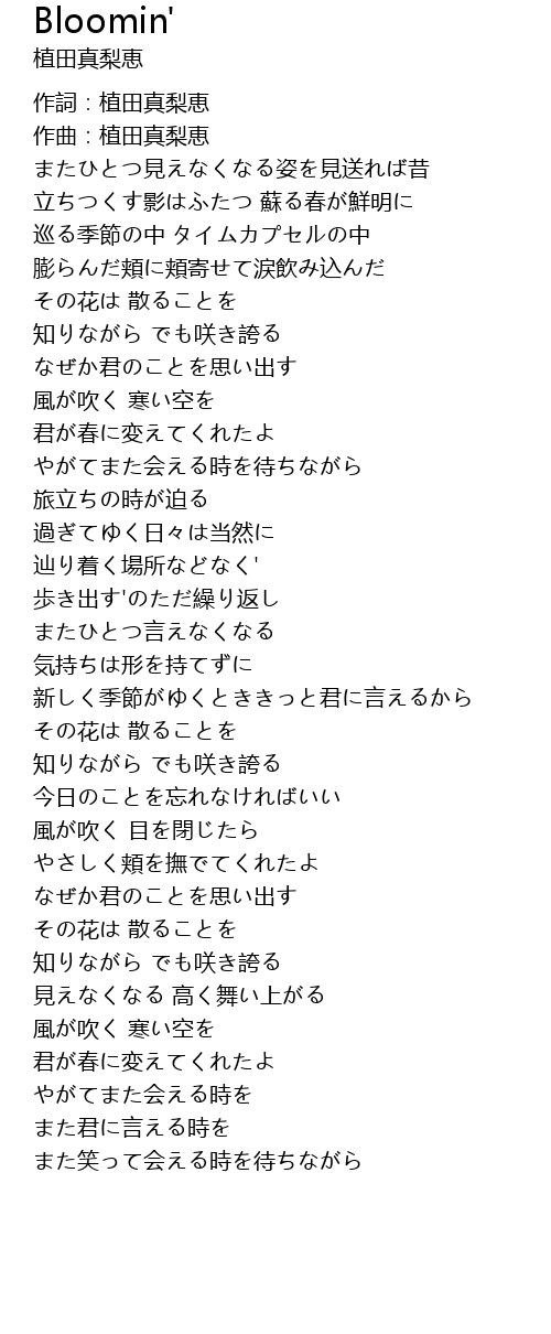 | [00:01.00] | 作詞:植田真梨恵 |