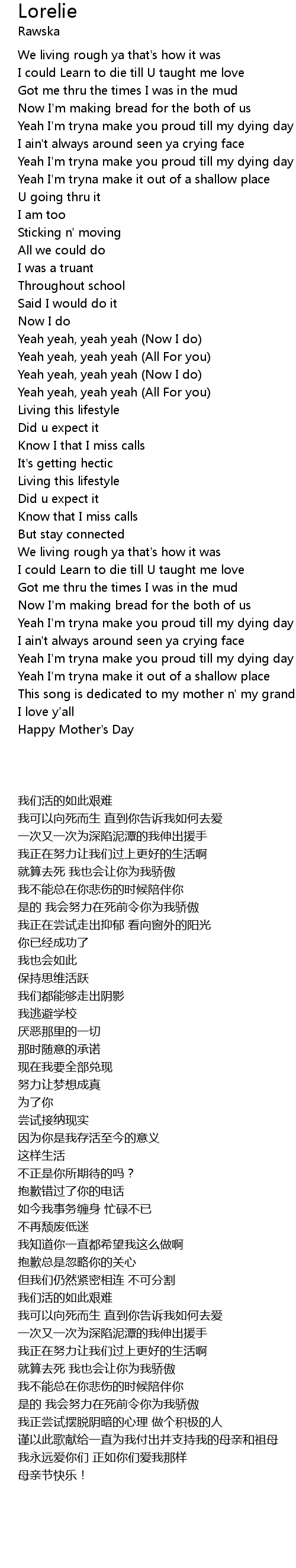 | [01:43.42] | Yeah I'm tryna make you proud till my dying day |